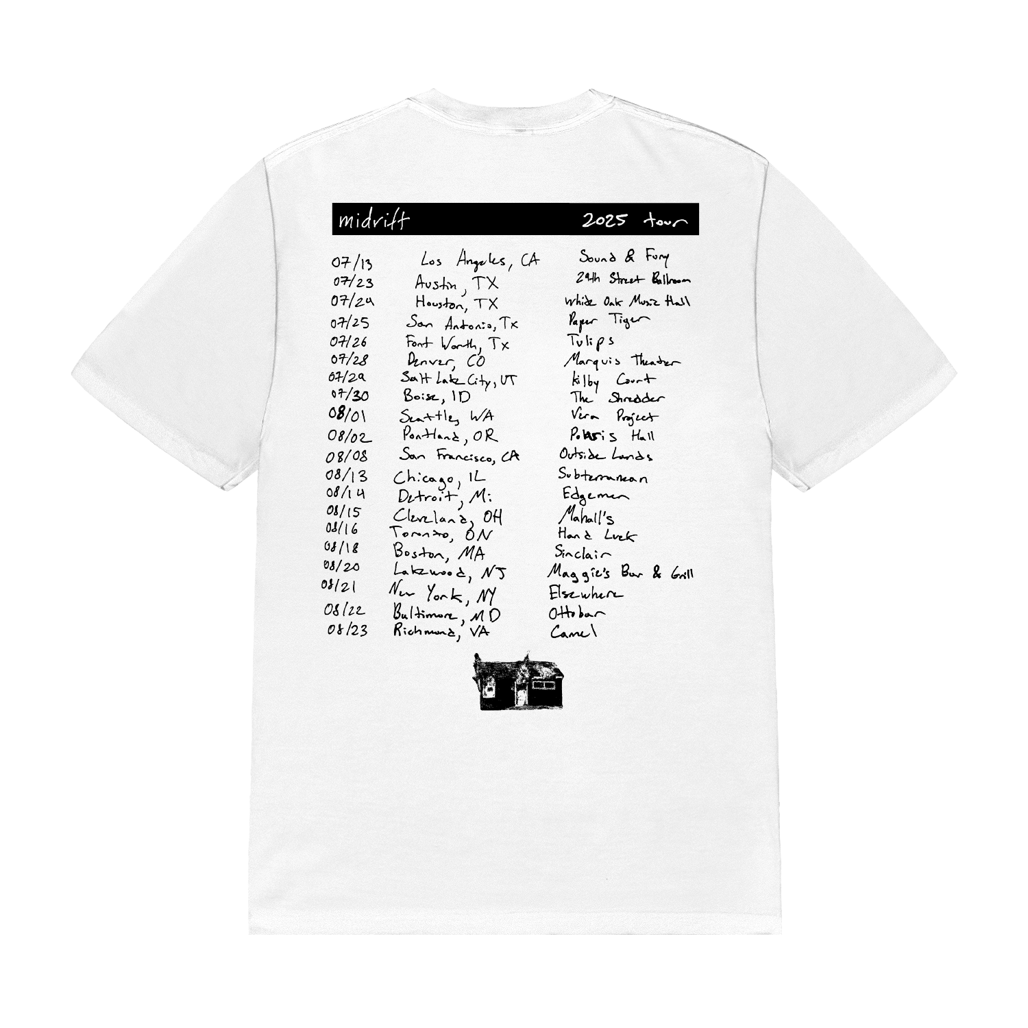Official Midrift Merchandise. Screen printed on a white 100% Cotton T-Shirt with a relaxed fit.